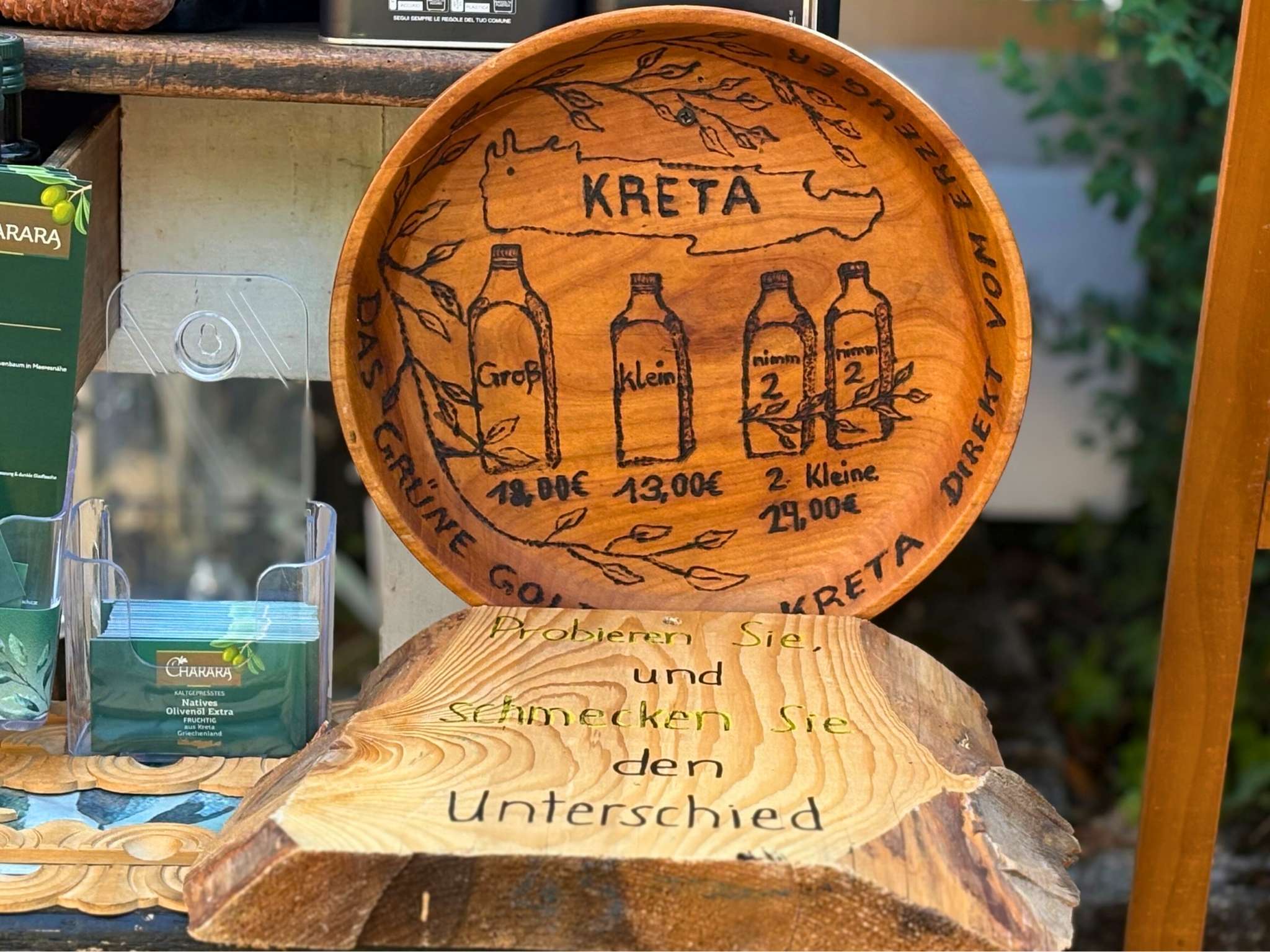 Was: Beim Olivenprinz gibt es Oliven, verschiedene Antipasti, Ingwer, Bio-Zitronen, eingelegter Schafskäse, Knoblauch, Brot, Baguette und Schokocroissants.