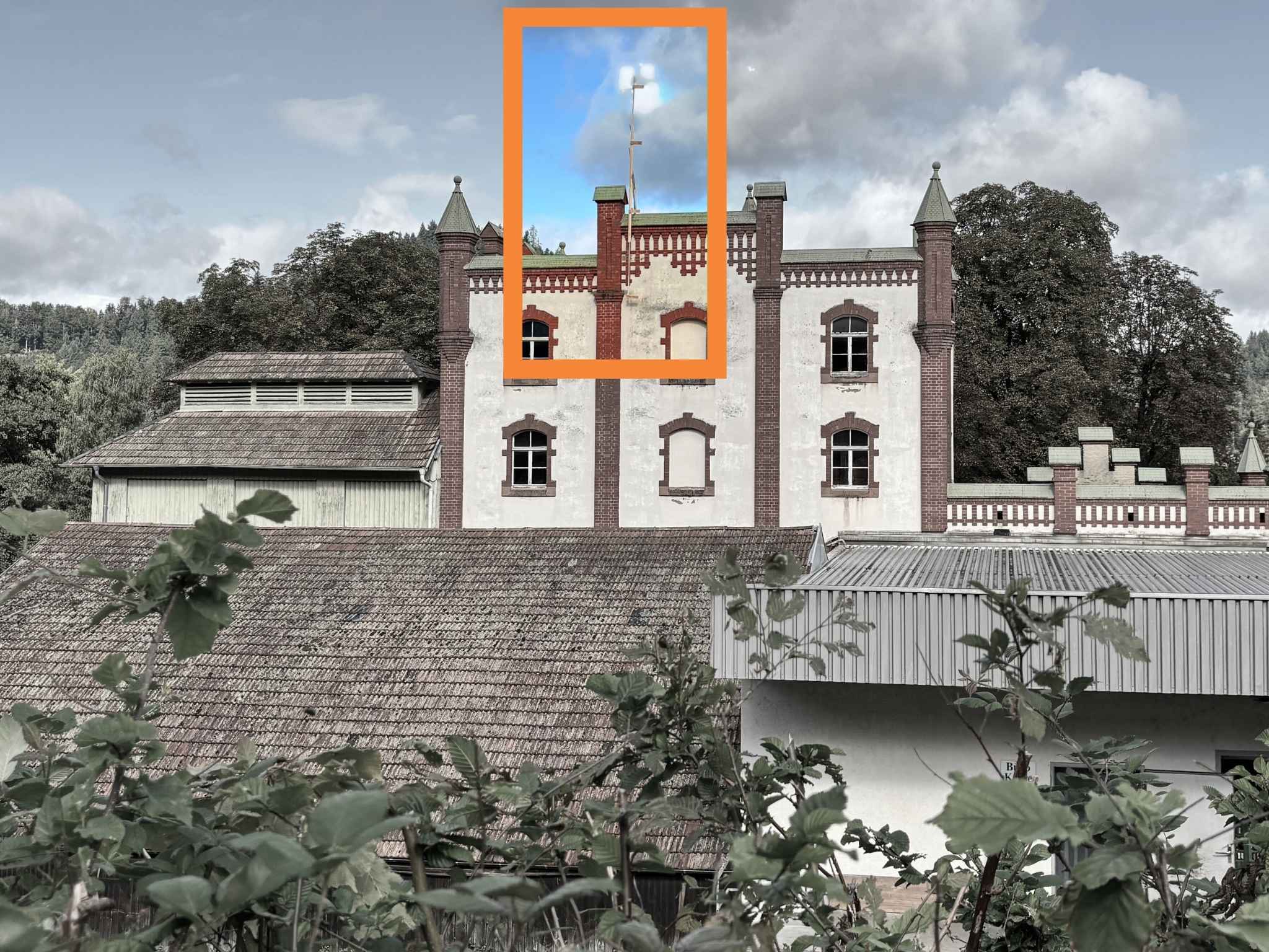 Höhenmarkierung am bestehenden Brauereigebäude