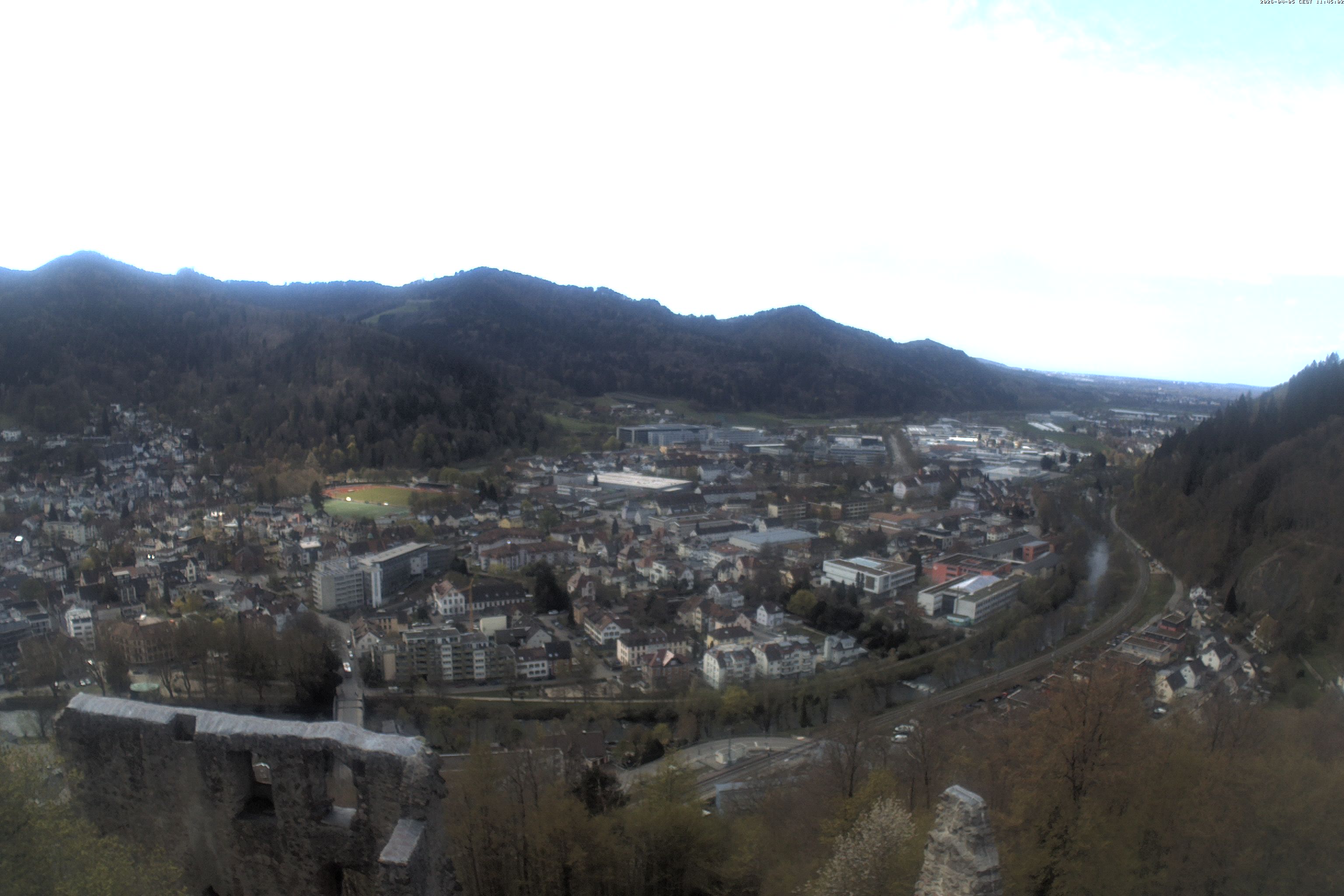 Die Webcam auf der Kastelburg zeigt im unteren Bild Waldkirch in Richtung Freiburg.