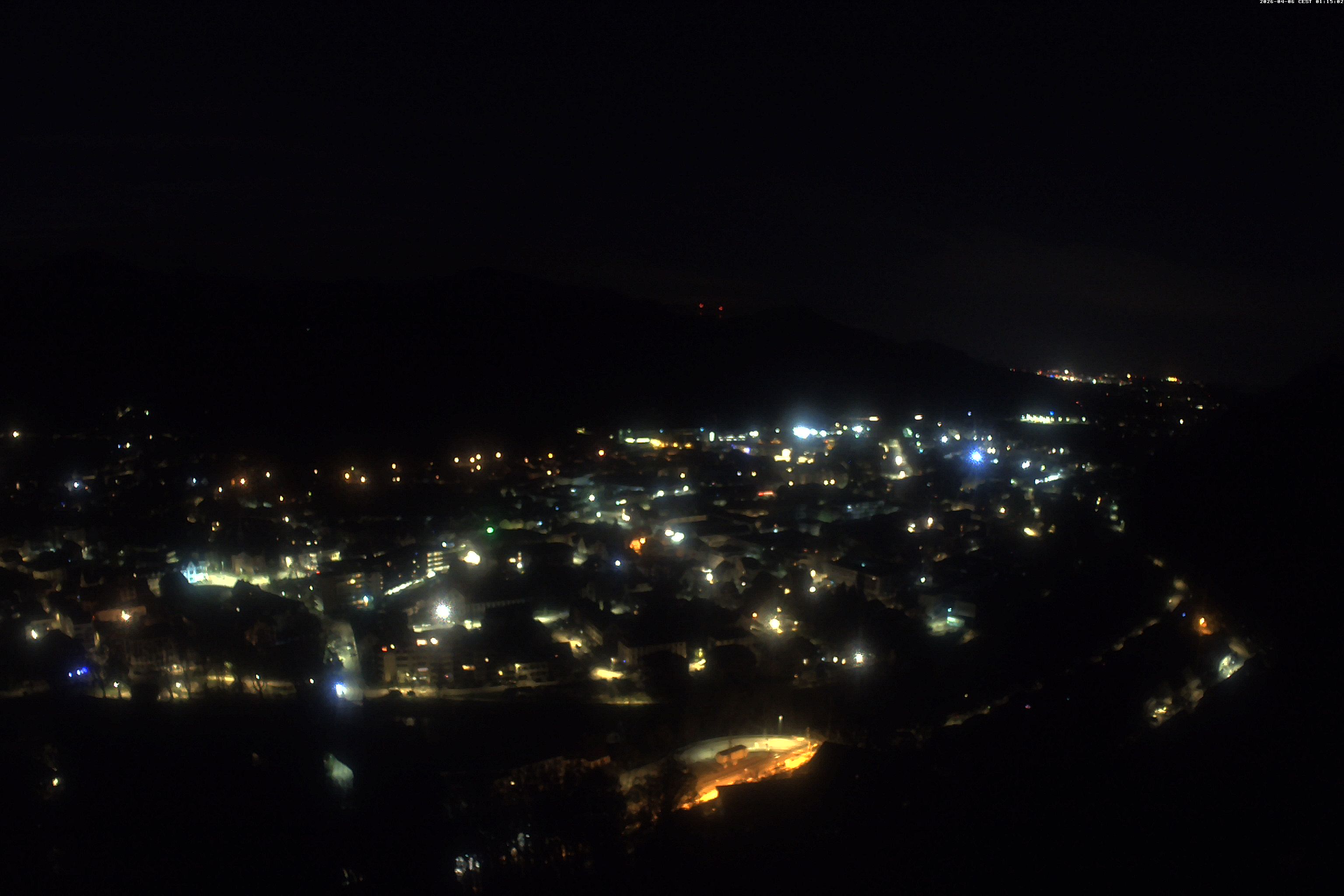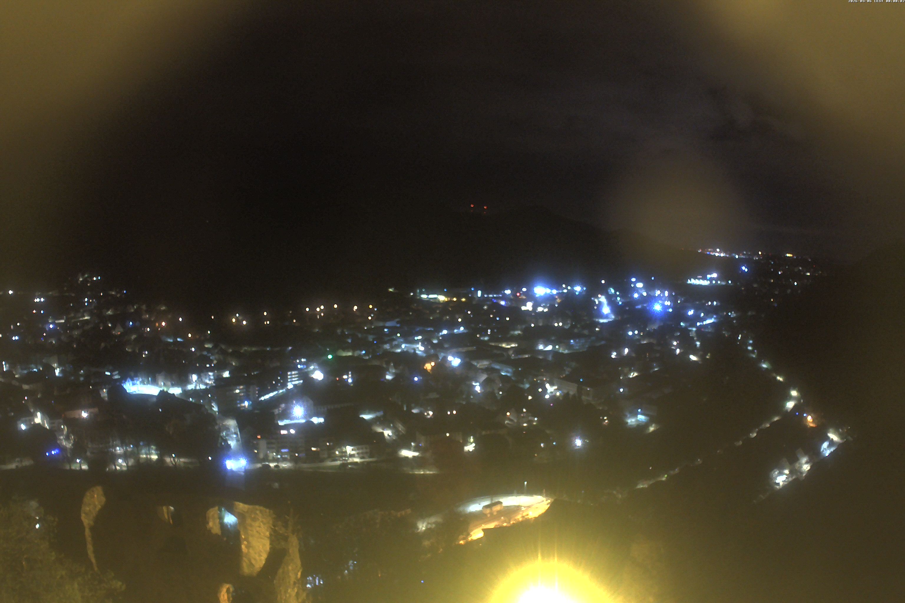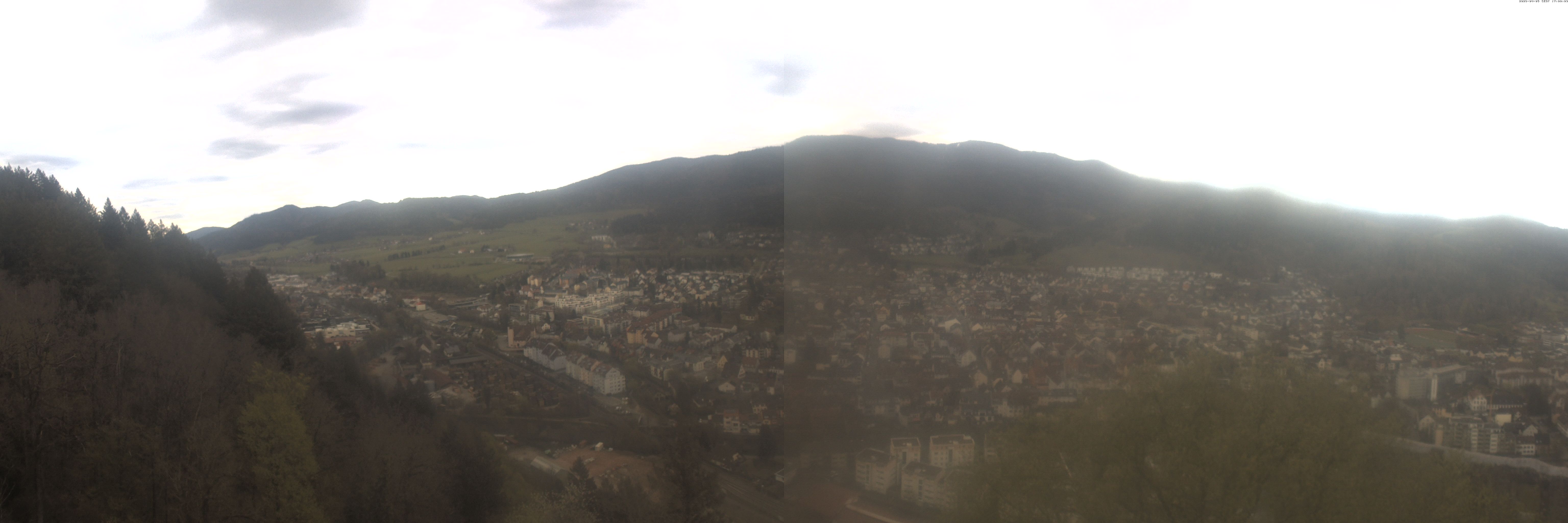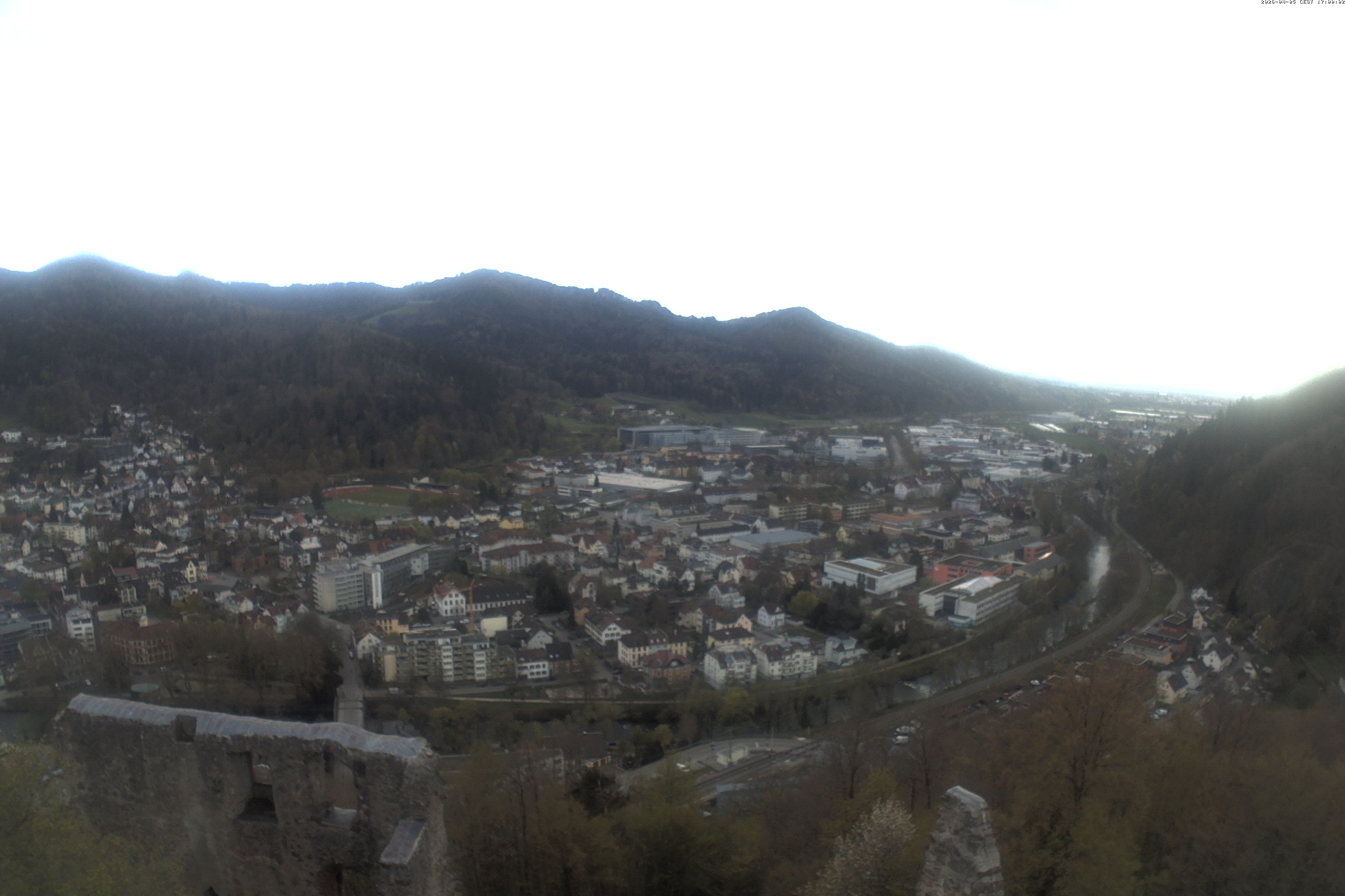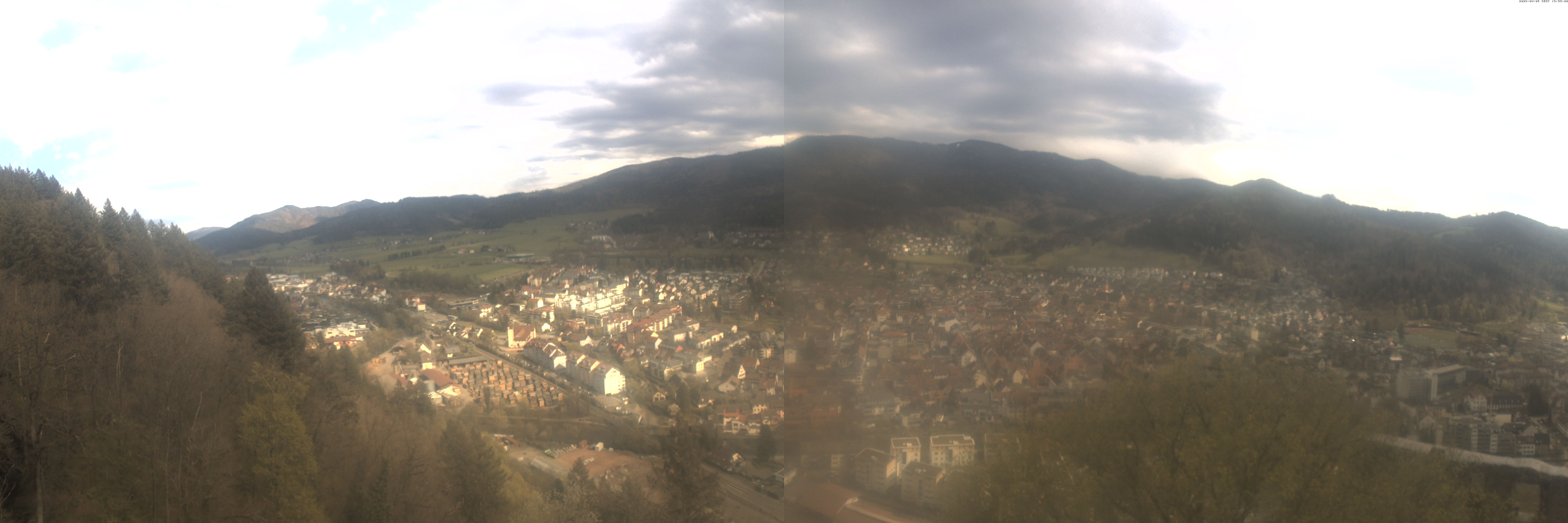 Die Webcam auf der Kastelburg zeigt im unteren Bild Waldkirch in Richtung Freiburg.