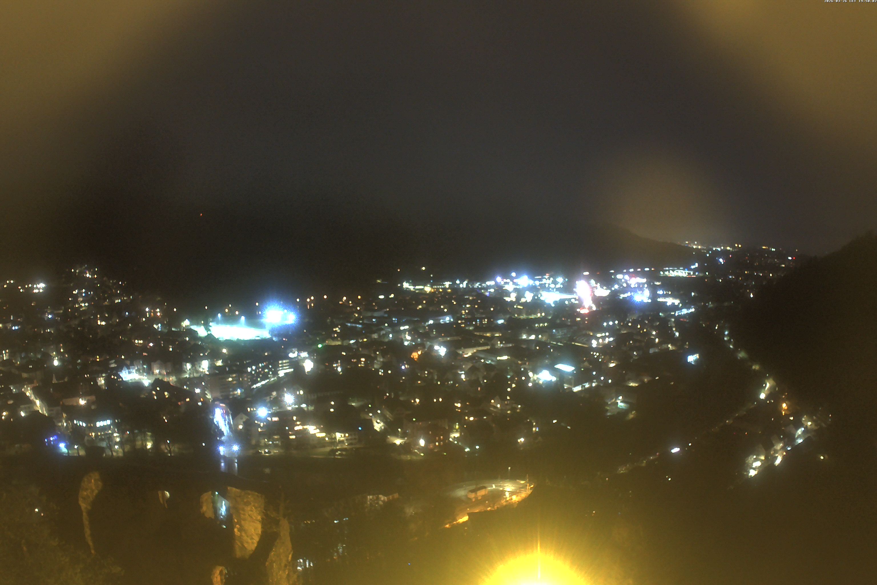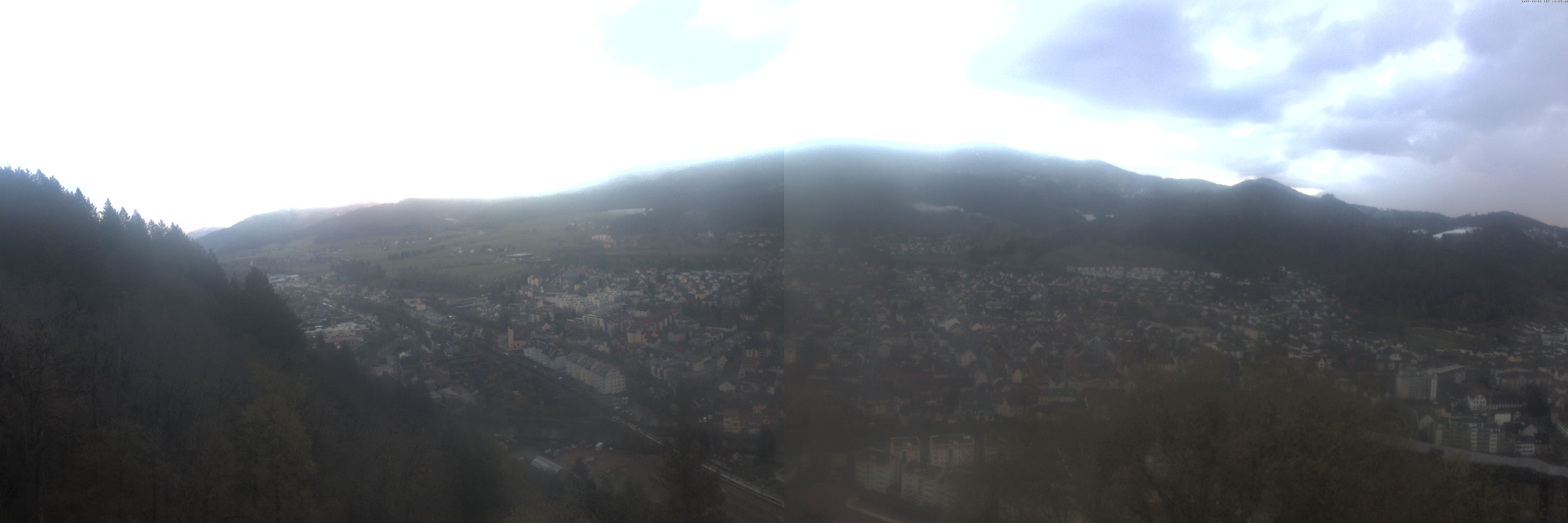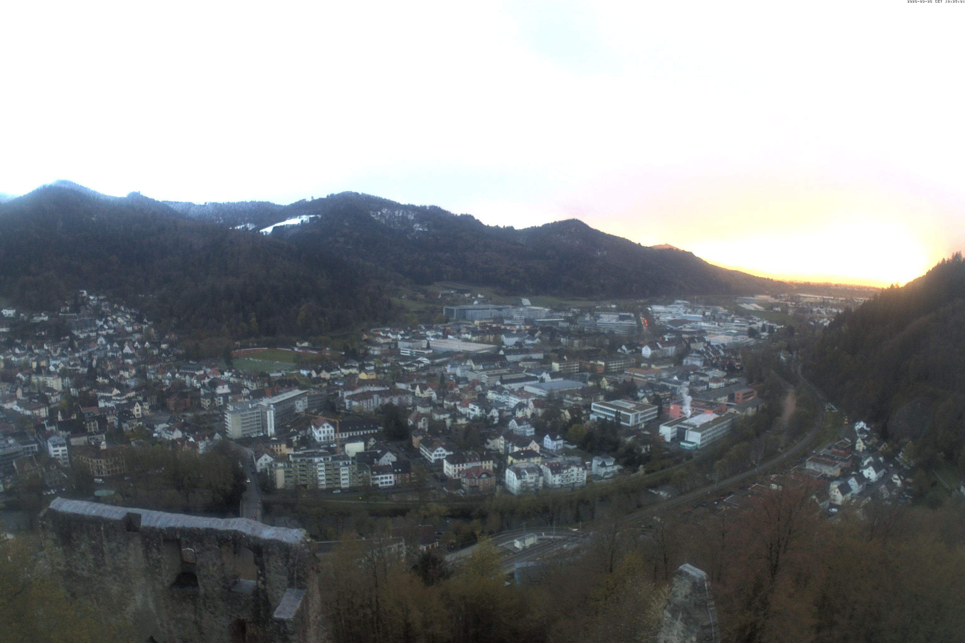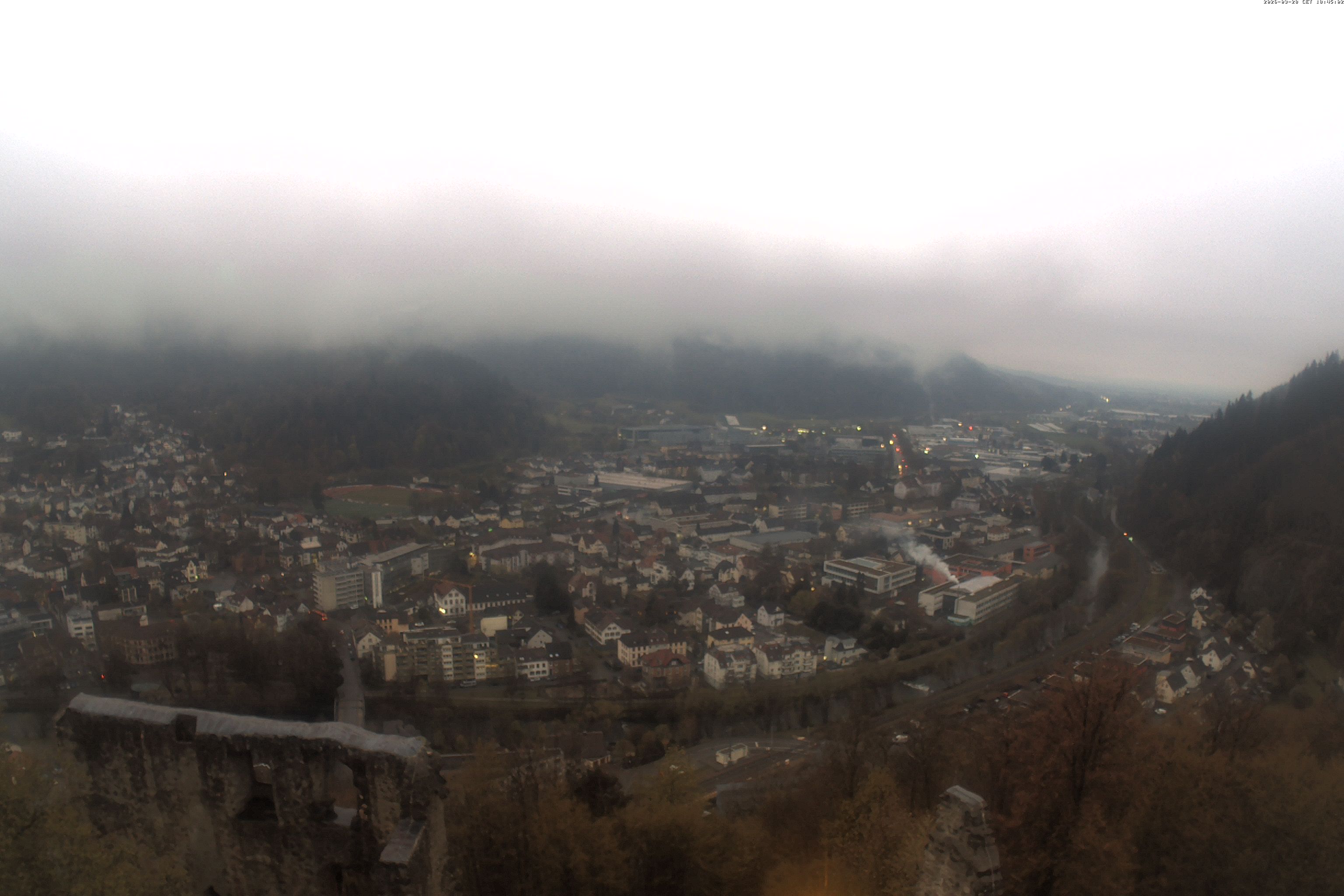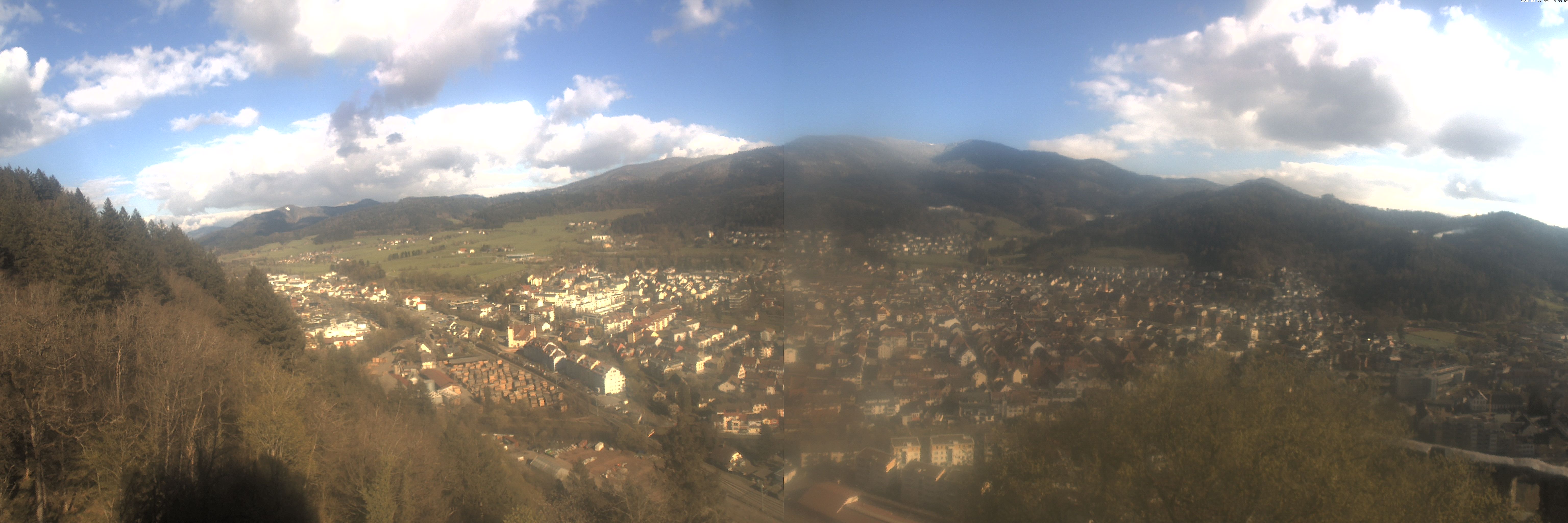 Die Webcam auf der Kastelburg zeigt im unteren Bild Waldkirch in Richtung Freiburg.