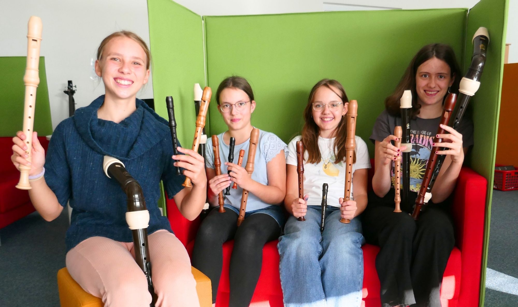 Aktuell proben elf junge Schülerinnen und Schüler wöchentlich zusammen im Ensemble "Flautino". Alle Kinder haben bereits angefangen auch auf der Altblockflöte zu spielen, um ihr Ensemble bald mit tieferen Klängen zu bereichern. Spielerisch wird mit gemeinsamen Flötenübungen, fröhlichen Liedern, Kanons und leichten mehrstimmigen Sätzen musiziert. So sammeln die Kinder erste Erfahrungen im Ensemblespiel und erleben, wie viel Freude das gemeinsame Flötenspiel macht.
