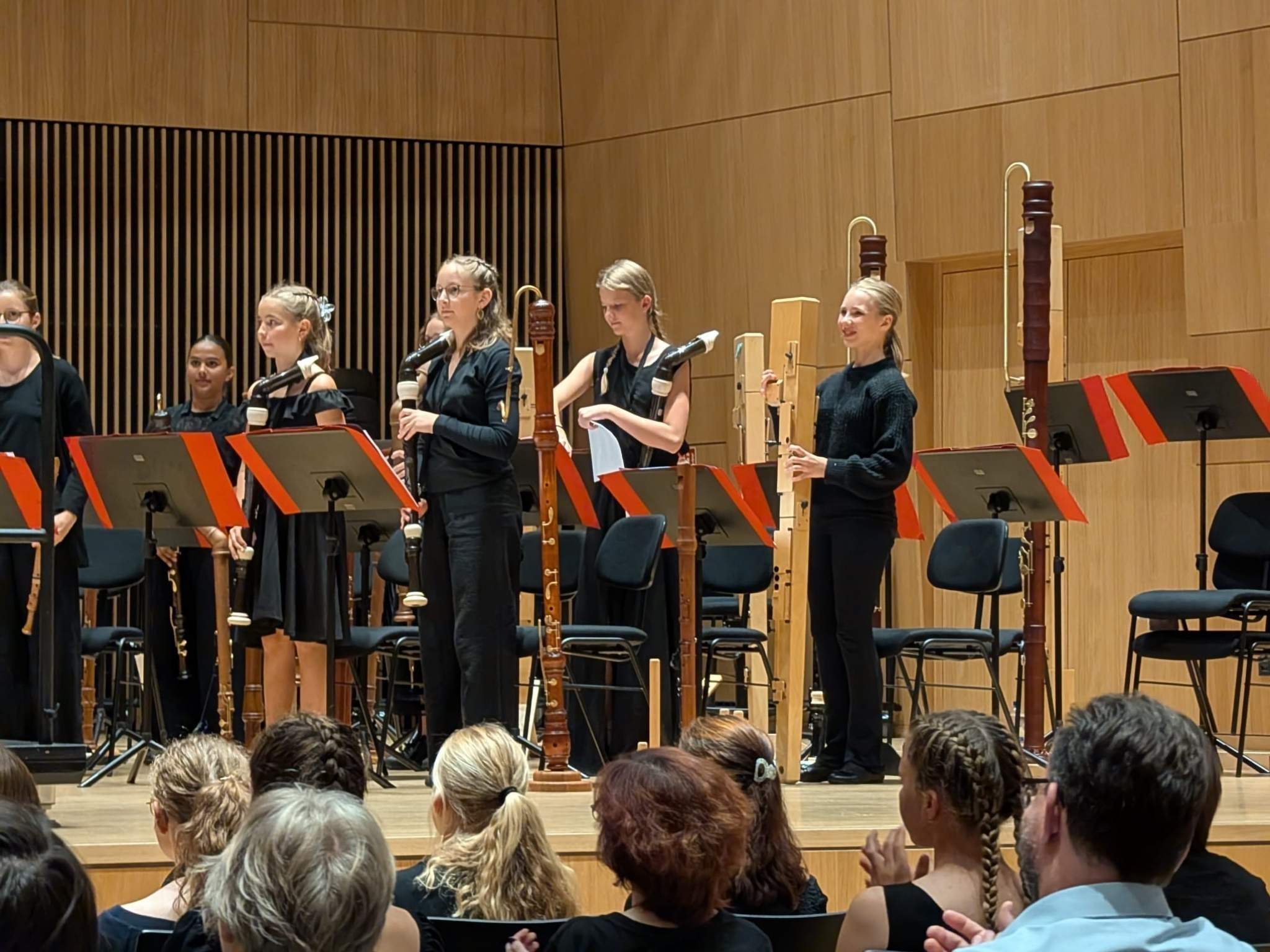 Am letzten Tag gab es ein Werkstattkonzert in der Tauberphilharmonie, wo wir die Stücke aufgeführt haben, welche wir die letzten Tage geprobt hatten. Es war ein vielseitiges Programm, in dem wir neben barocken Stücken auch neuere gespielt haben, bei denen die Bass-und Subbassblockflöten zu Orgelpfeifen wurden. Die Probenphase war eine tolle Erfahrung, und ich freue mich schon auf das nächste Mal.