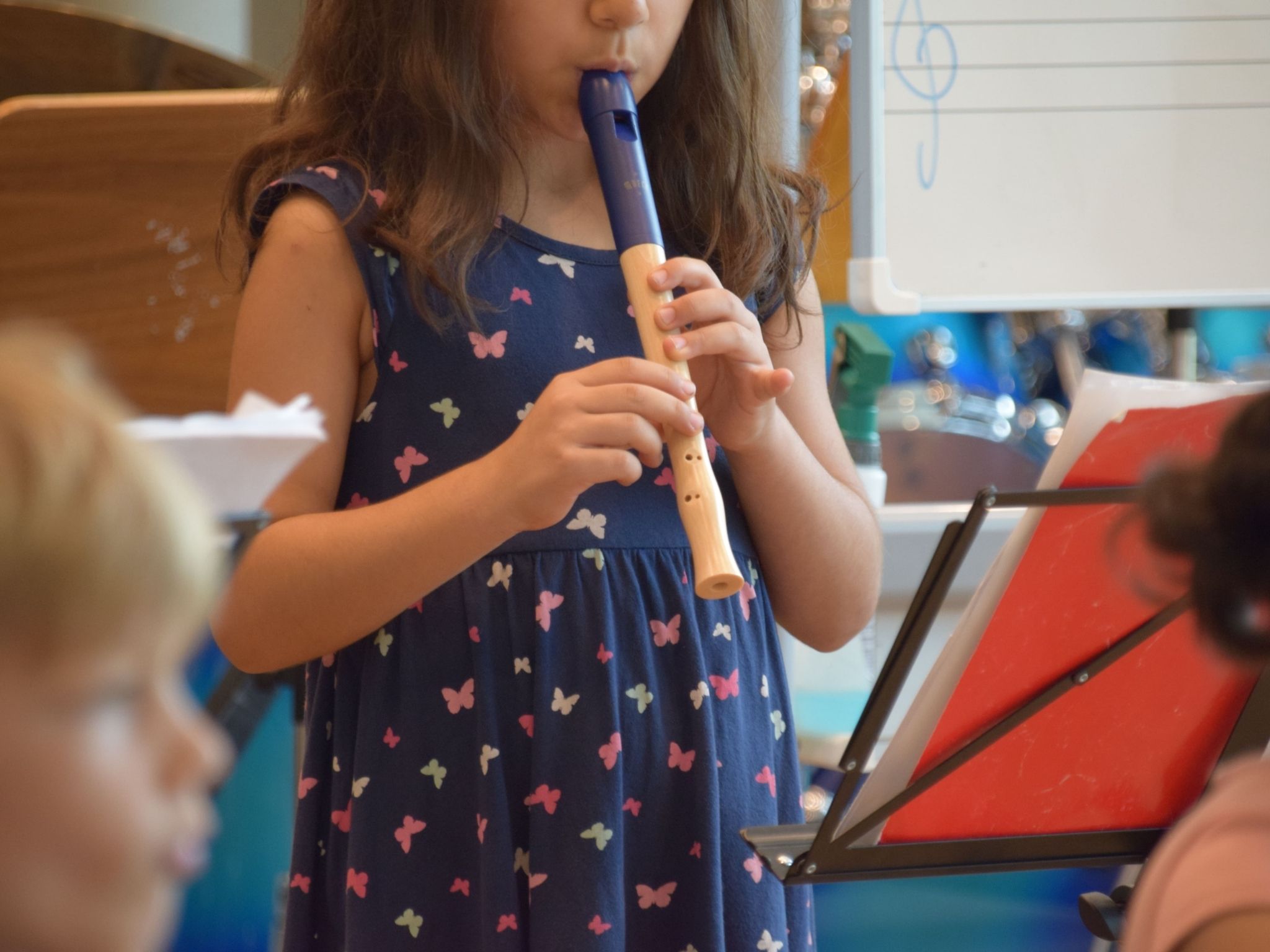 Neben Singen, Rhythmus- und Bewegungsspielen stehen auch Basteln, Geschichten und das Hören von Musik auf dem Programm. Ältere Kinder können in dieser Zeit gemeinsam musizieren oder üben.