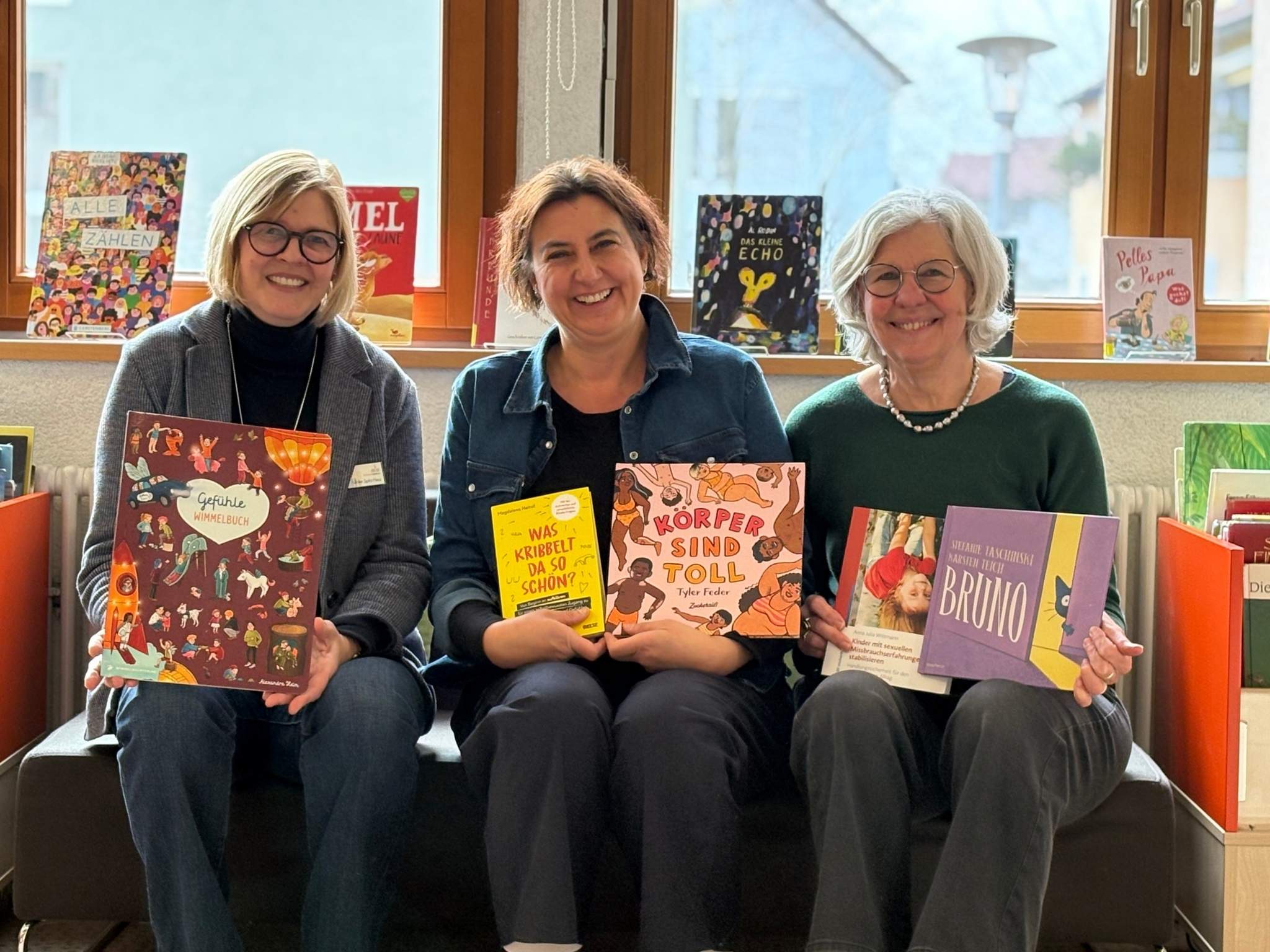Die Bücher richten sich an Kinder, Eltern sowie pädagogisches Fachpersonal und ergänzen das bestehende Angebot der Mediathek. Übergeben wurden die Bücher von Claudoa Mack und Dagmar Weis-Welteroth vom Kinderschutzbund an Mediatheksleiterin Ulrike Spitz-Hess. Die Idee zur Spende entstand im vergangenen Jahr im Rahmen einer Veranstaltung zum Thema Kinderschutz. Die Mediathek freut sich über die Erweiterung ihres Bestandes und bedankt sich herzlich beim Kinderschutzbund Waldkirch für das Engagement.