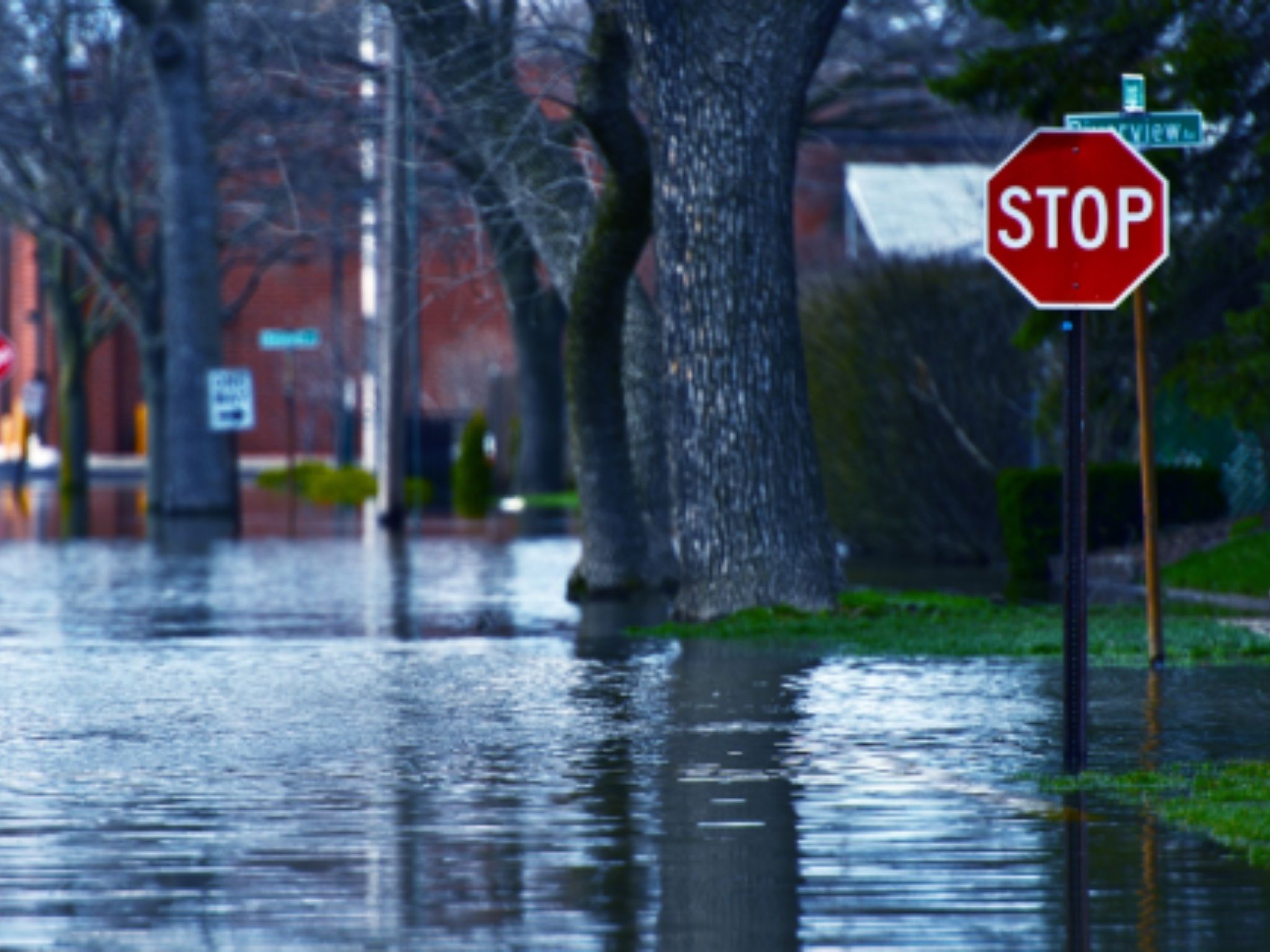 Auch in der Ebene können Starkniederschläge Überflutungen verursachen. Da die großen Wassermengen meistens über den Bemessungsgrenzen der Kanalnetze liegen, können sie weite Flächen schnell unter Wasser setzen. Vor allem die Bebauung und Infrastruktur in den Senken können dabei erheblich geschädigt werden.