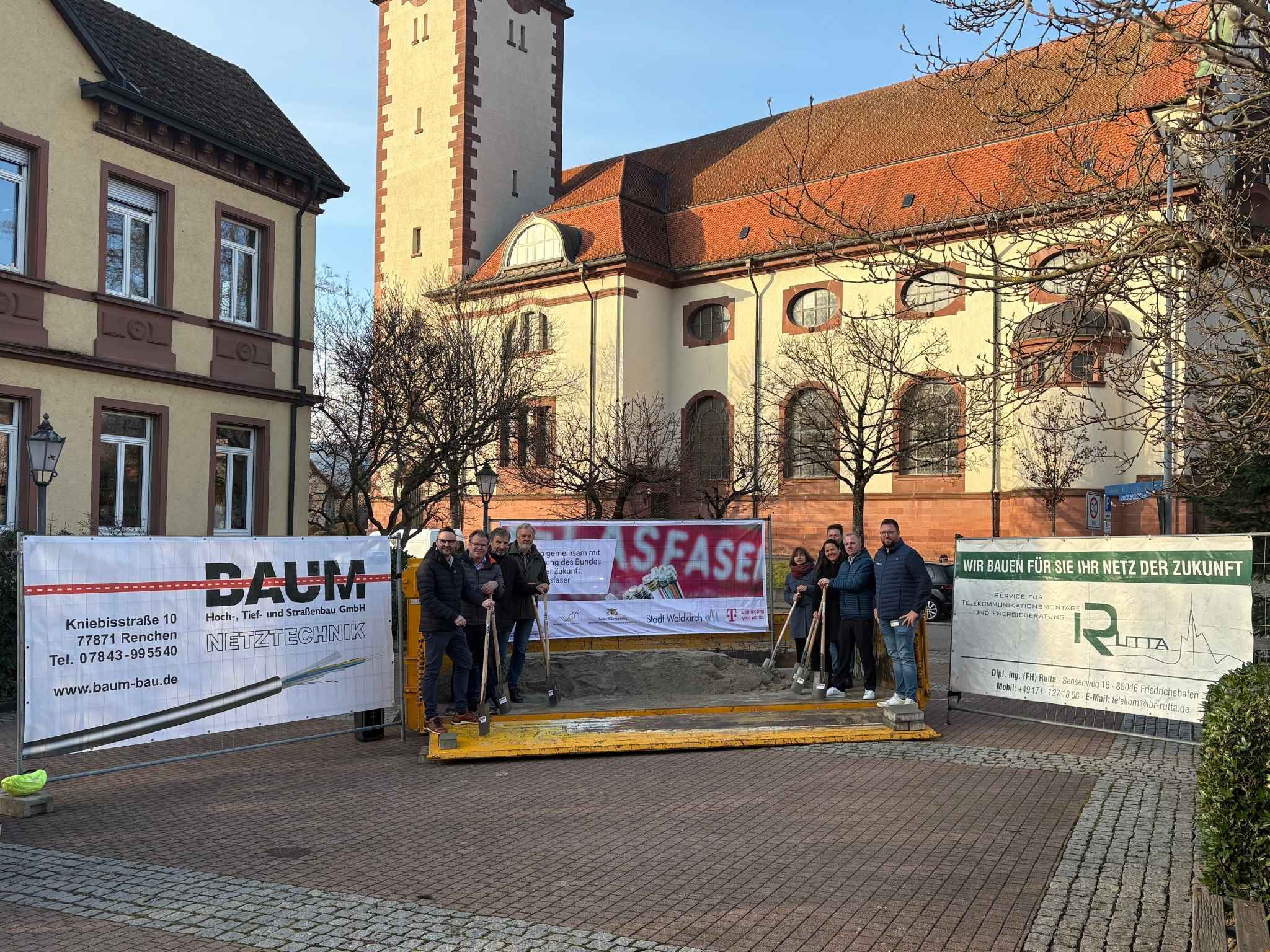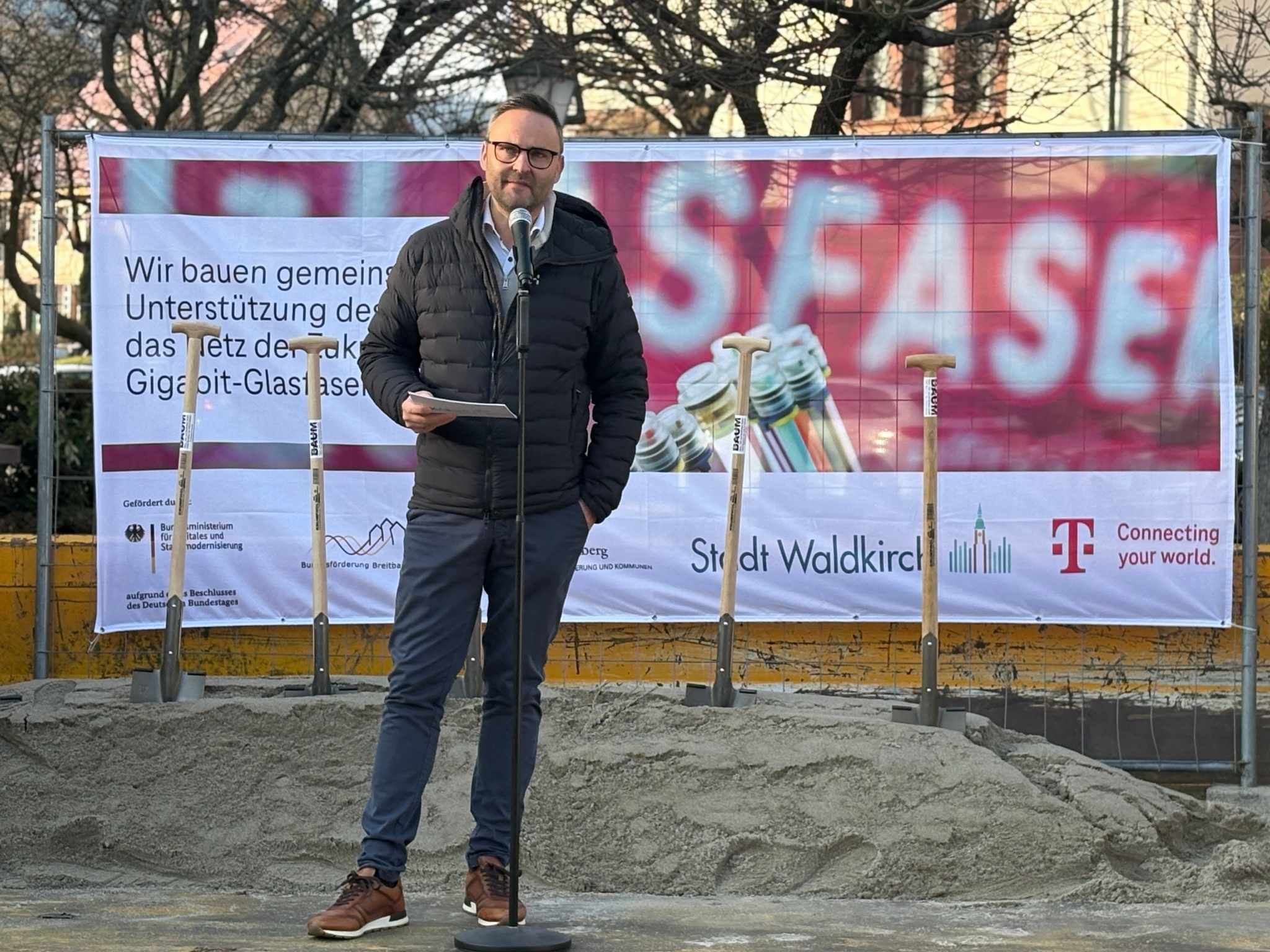 Mit dem Spatenstich am 3. Dezember 2025 hat der Breitband-Ausbau in Waldkirch begonnen. Der Ausbau findet in den zwei Projekten „Graue Flecken“ (für Haushalte) und „Weiße Flecken“ (für Schulen) statt. Der Bau hat in beiden Projekten bereits begonnen. Im Projekt „Weiße Flecken“ hat der Ausbau an der Freien Schule Elztal in Kollnau begonnen. Dort ist der Ausbau bereits abgeschlossen und die Schule an das Breitband angeschlossen. Im Projekt „Graue Flecken“ hat der Ausbau ebenfalls in Kollnau begonnen. Dort sind die ersten zwei Straßen bereits fertig.